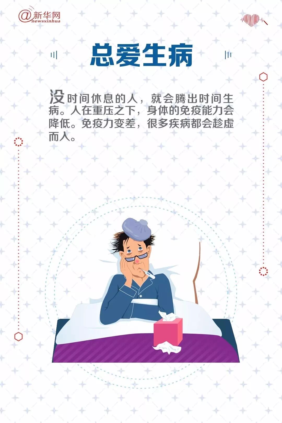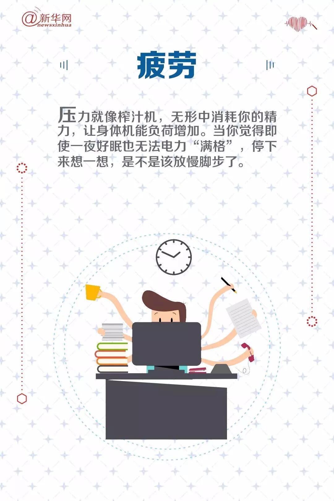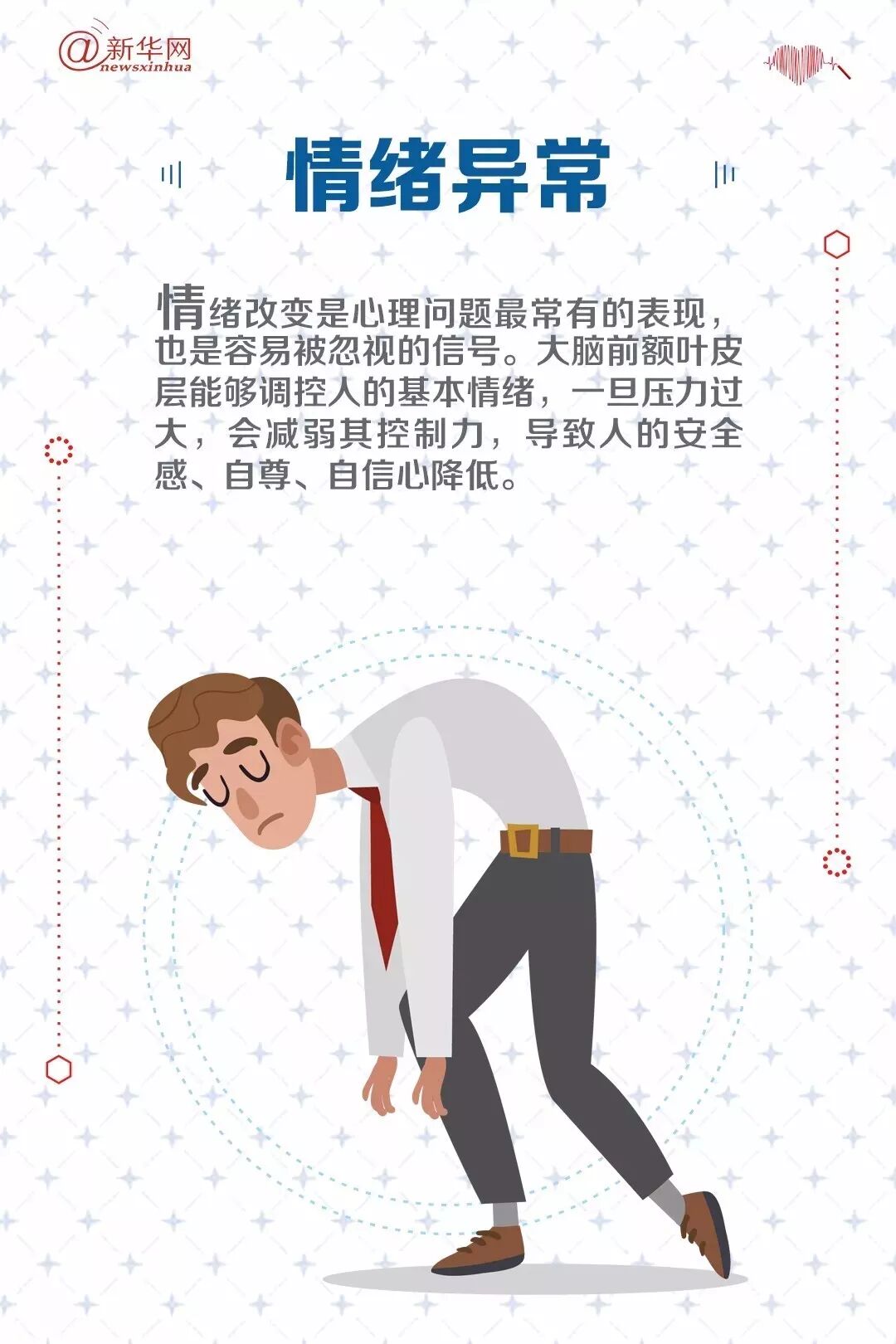 心理疾病会对人们的工作与生活产生诸多负面影响,而心理疾病往往也都来自于工作生活中负面情绪的累积。看看这些“报警信号”,及时调整,关爱自己,健康生活。
