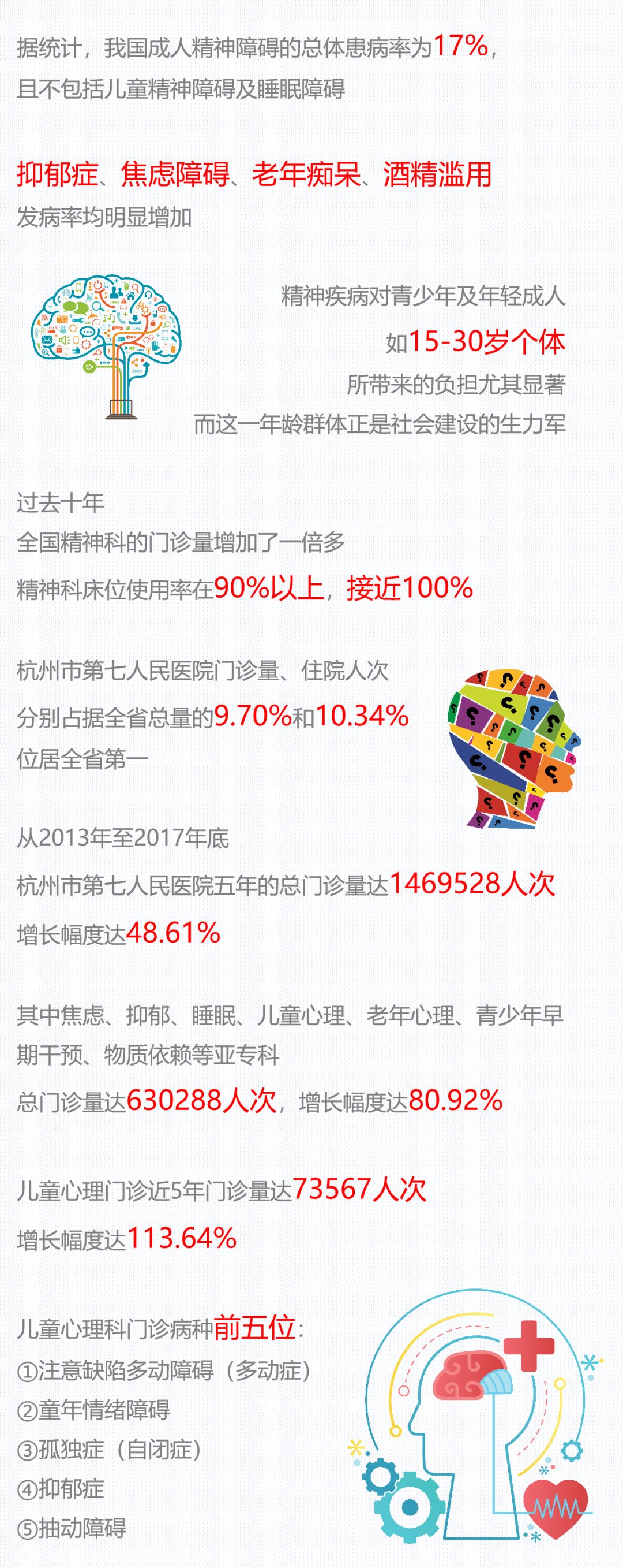 来源:本站 发布时间:2019-10-10今天是第27个“世界精神卫生日”。今年的主题是“健康心理,快乐人生——关注儿童青少年心理健康”。杭州人在心理健康方面最常见的问题有哪些?如何利用“报警信号”及时发现自己的心理问题?今天发布《浙江省精神卫生服务资源蓝皮书》给出解释。