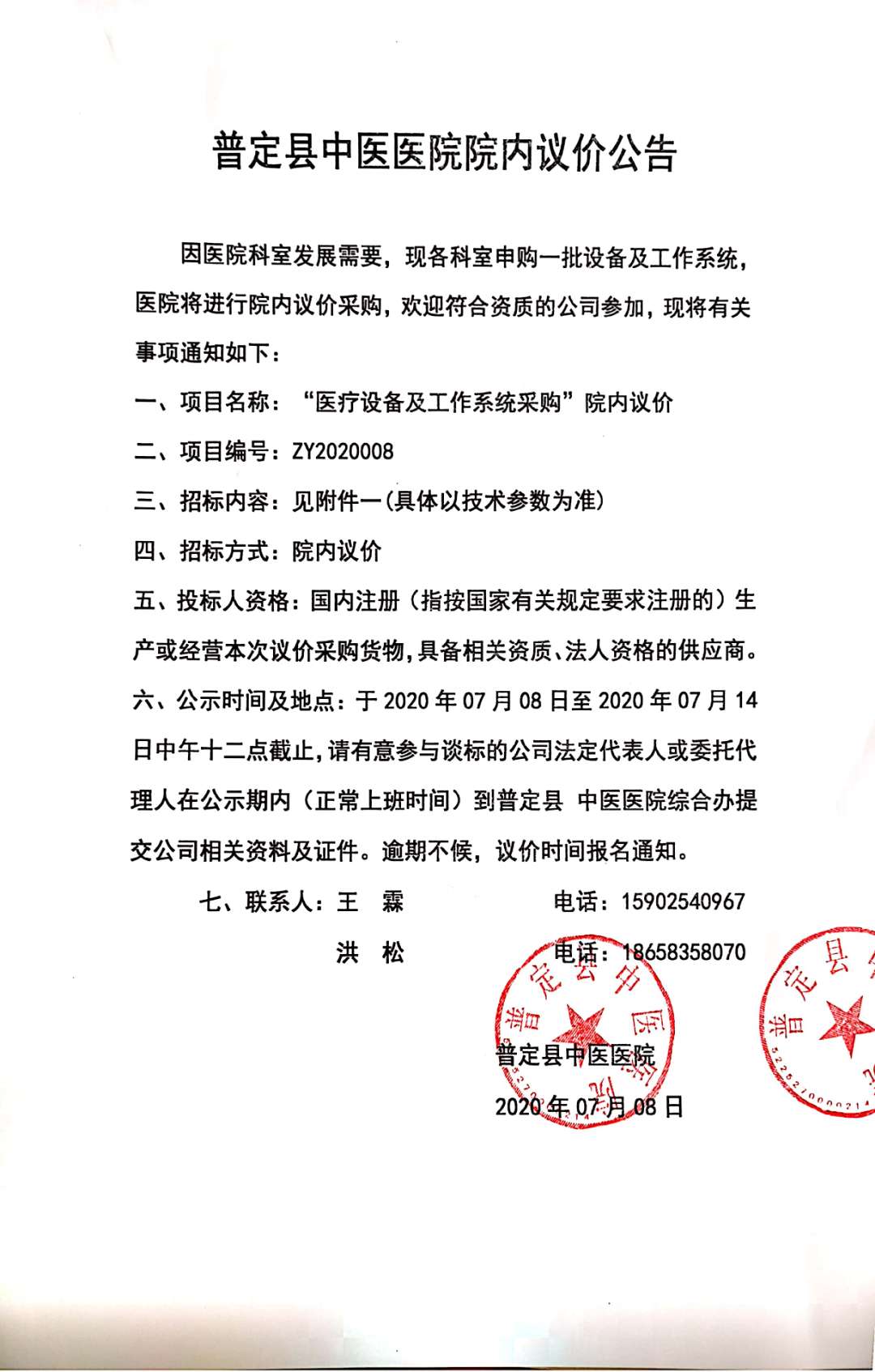 》ZY20250037-普定县中医医院院内比选结果公告 2025-10-30