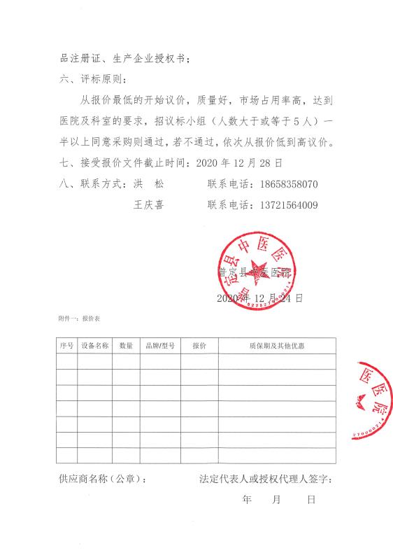 普定县中医医院询价函