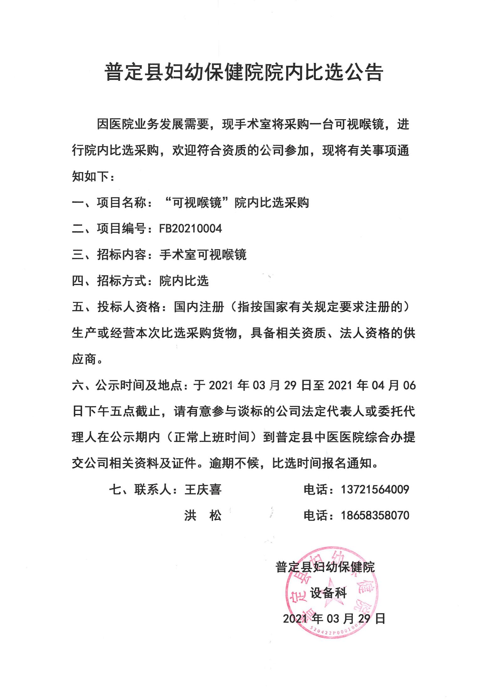 》ZY20250037-普定县中医医院院内比选结果公告 2025-10-30