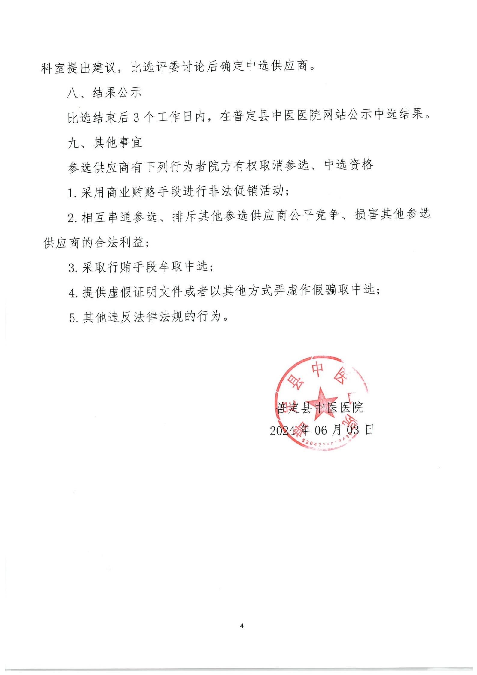 》ZY20250037-普定县中医医院院内比选结果公告 2025-10-30