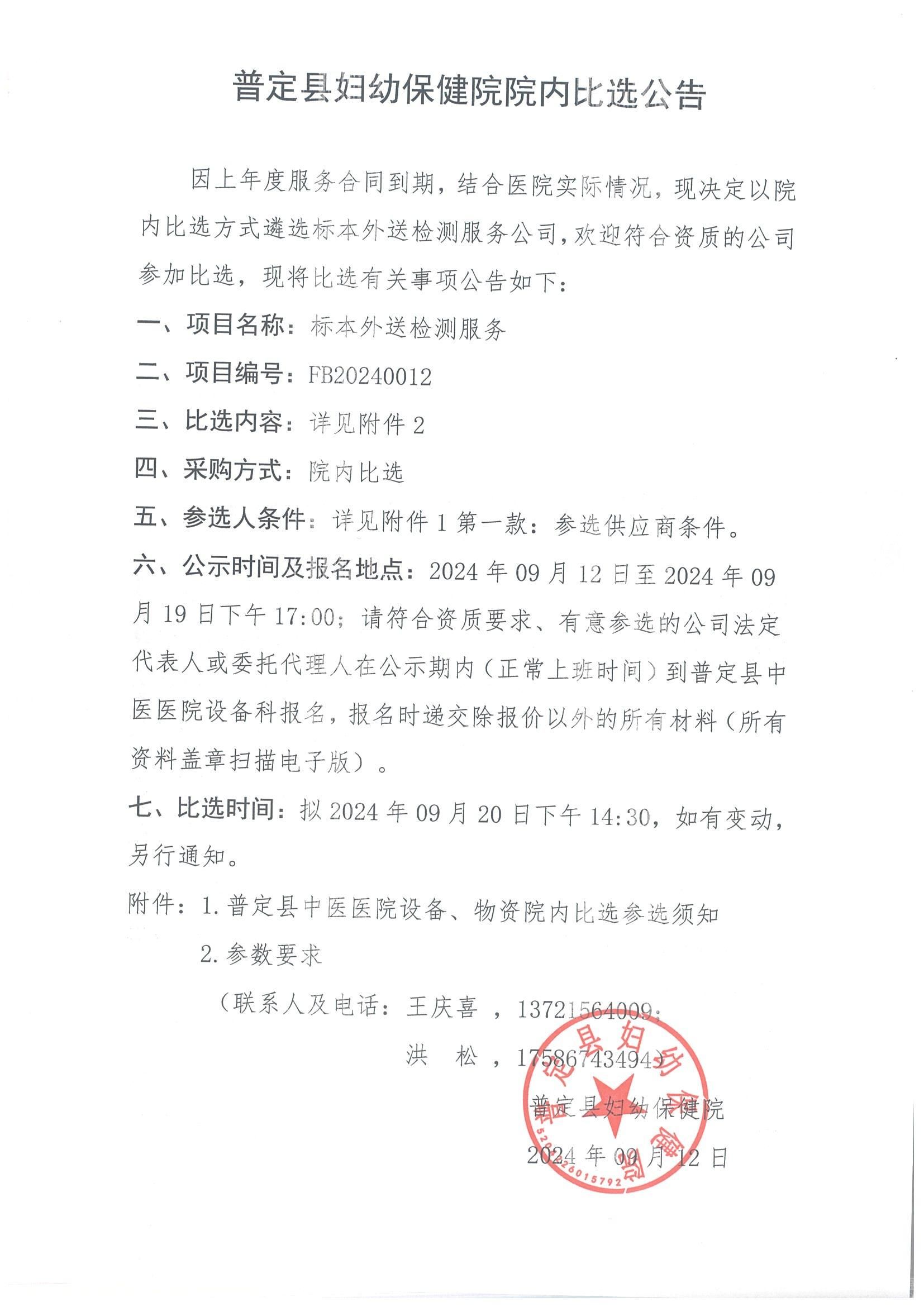 FB20240012-普定县妇幼保健院院内比选公告
